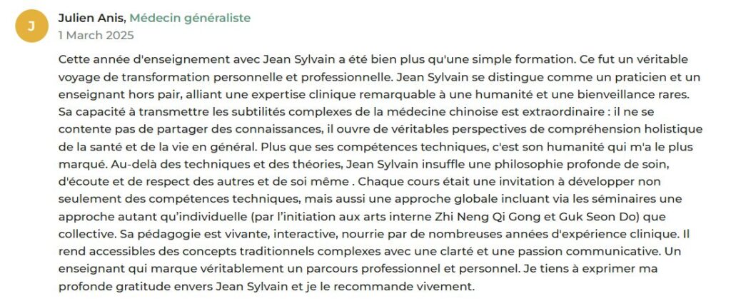 À travers mon enseignement, j’ai l’intention de démontrer que la médecine chinoise ne se limite pas à une collection de techniques thérapeutiques, mais qu’elle repose sur une elucidation du mystère de l’origine des grands motifs célestes et terrestres, sur la dynamique de la respiration Yīn 陰 Yáng 陽 et les mécanismes des mutations et transformations cycliques auxquels l’être humain est intimement soumis.